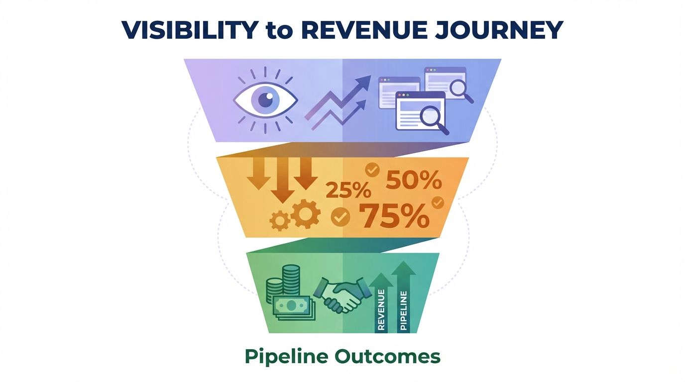 A visibility-to-pipeline scorecard is a concise dashboard that links attention to revenue. It shows inputs, conversions, and outcomes.